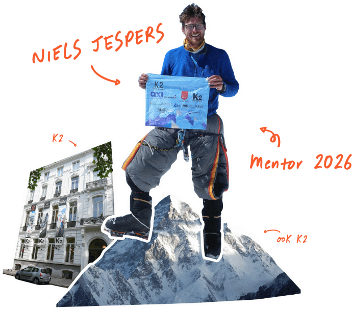 Niels Jespers is een ervaren alpinist en outdoor professional met een indrukwekkend palmares. Hij beklom onder meer de K2, één van de technisch moeilijkste bergen ter wereld. Een project dat voorbereiding, doorzettingsvermogen en absolute focus vraagt. Daarnaast stond hij op verschillende andere grote toppen en realiseerde hij uitdagende expedities in uiteenlopende omstandigheden. En ja, ook de gevel van K2 op de Frankrijklei staat op zijn palmares.