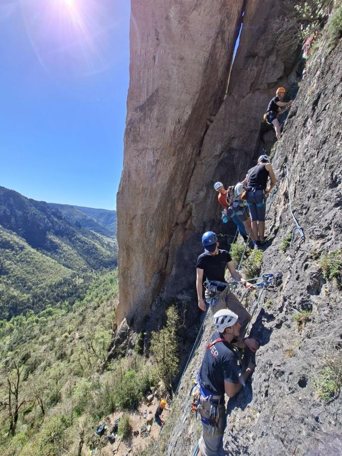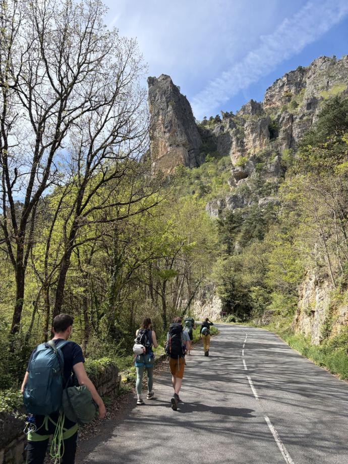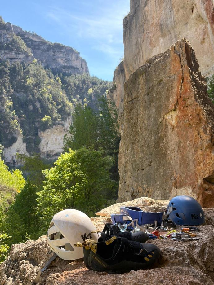 Arne en Jens volgden hun stage bij Vertical Thinking in de Gorges du Tarn, Zuid-Frankrijk. Dat is een bekende klimregio, en ook een heel toegankelijke plek om als zaalklimmer je eerste echte rotsmeters te maken. Er zijn veel verschillende soorten routes , in een brede moeilijkheidsrange. Voor een stage is dat ideaal. Niet iedereen in een groep klimt hetzelfde niveau, en dan is het handig als een regio veel opties heeft zonder dat je ver moet verplaatsen. Bovendien leer je in zo’n omgeving niet alleen klimmen, maar ook route kiezen, topo’s lezen, je dag indelen en (volgende keer) voldoende marge houden voor de afdaling. Dat zijn allemaal dingen die buiten minstens even belangrijk zijn als puur het klimmen zelf.