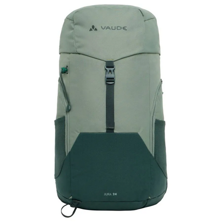 Alles op de juiste plaats: de Jura 24 liter wandelrugzak maakt indruk tijdens dagtochten met zijn opgeruimde uiterlijk en doordachte vakindeling. Het hoofdvak biedt ruimte voor schone kleren, eten en andere uitrusting, terwijl het snel toegankelijke dekselvak met sleutelclip ideaal is voor een muts, handschoenen, hoofdzaklamp of snacks. Naast de twee stretch zijvakken zijn er twee ritsvakken voor een wandelkaart of smartphone. De maximaal geventileerde rug van mesh, de ergonomisch gevormde schouderbanden en de heupgordel zorgen voor een hoog draagcomfort, zelfs tijdens langere wandeltochten. Een compartiment voor een drinkblaas, een houder voor wandelstokken en de geïntegreerde regenhoes maken de kenmerken van de wandelrugzak compleet. Hij is behandeld met Eco Finish PFC-vrij water- en vuilafstotend. Tijdens een dagtocht of voor dagelijks gebruik - de Jura 24 liter wandelrugzak is er voor jou. Het VAUDE Green Shape label staat voor een milieuvriendelijk, functioneel product gemaakt van duurzame materialen.