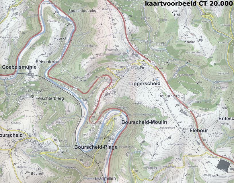De topografische kaart zonder toeristische informatie is ontworpen door de Administration du Cadastre et de la Topographie met behulp van meervoudige gegevens van de instantie zelf en andere overheidsinstanties in Luxemburg.